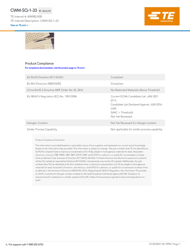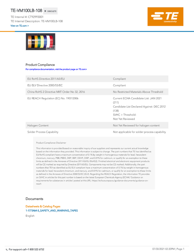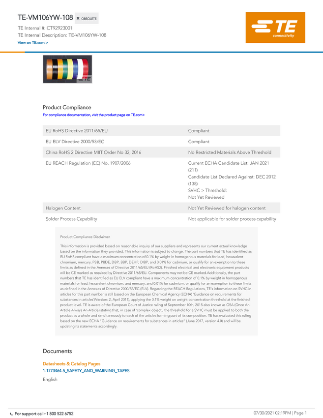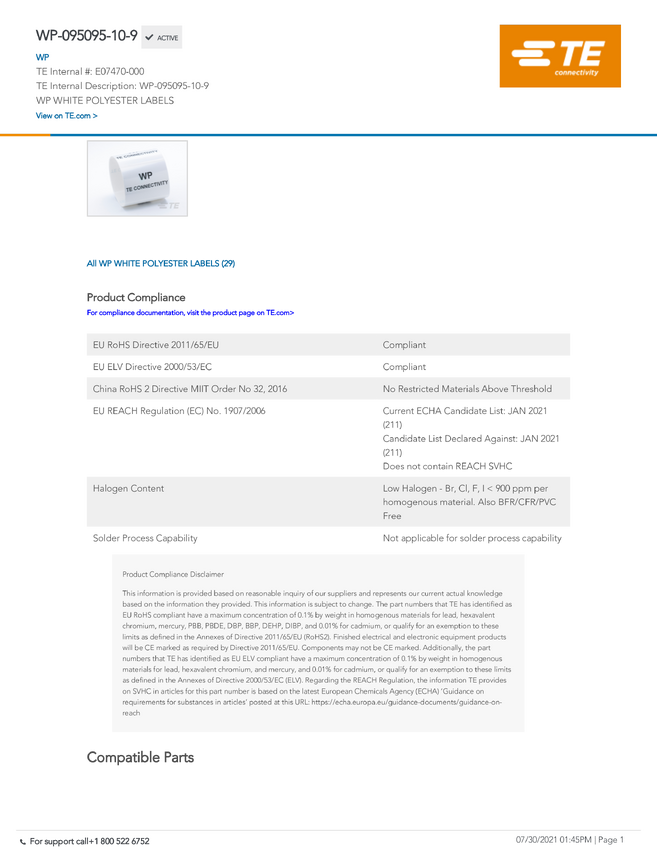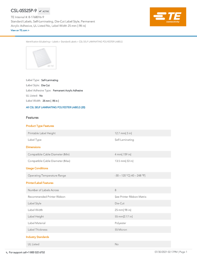 TE Connectivity 5-1768017-0 TE AMP Labels - Standard