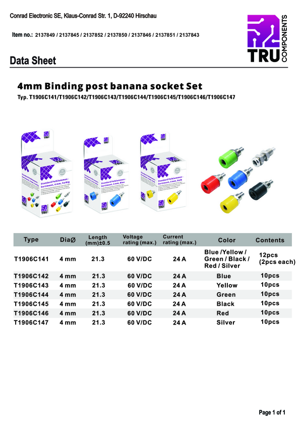 TRU COMPONENTS Złącze męskie laboratoryjne, zestaw 12 części