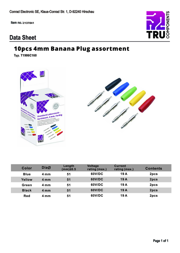 TRU COMPONENTS Złącze męskie laboratoryjne, zestaw 10 części