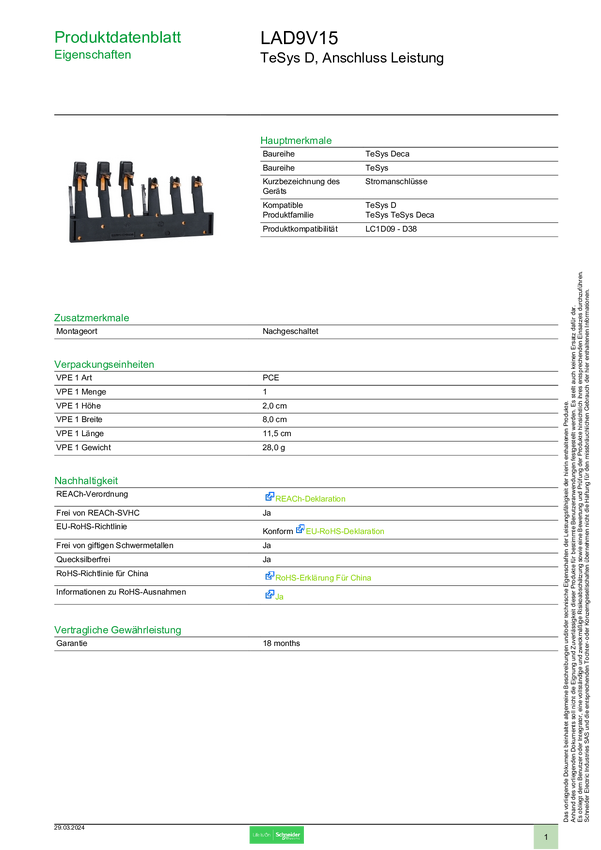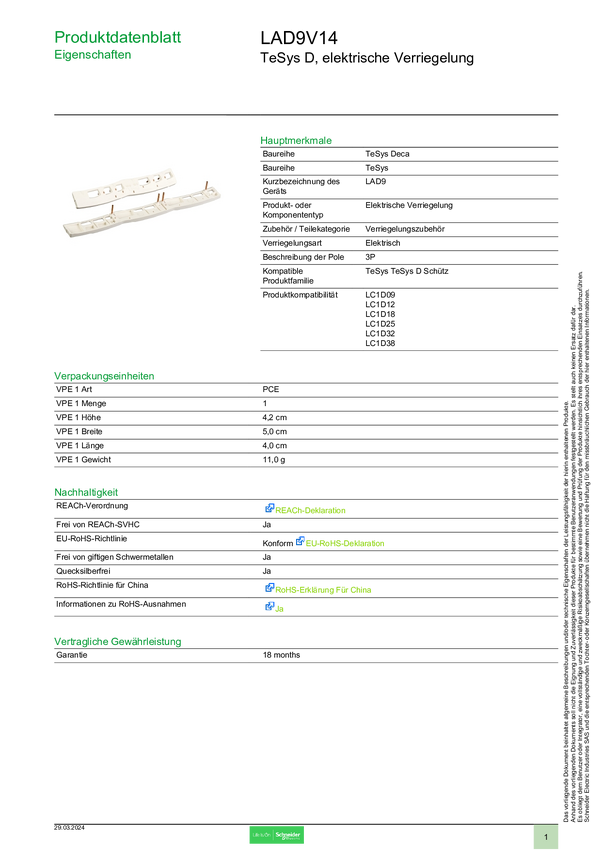 Schneider Electric LAD9V16 Akcesorium do wyłącznika mocy 1 szt.