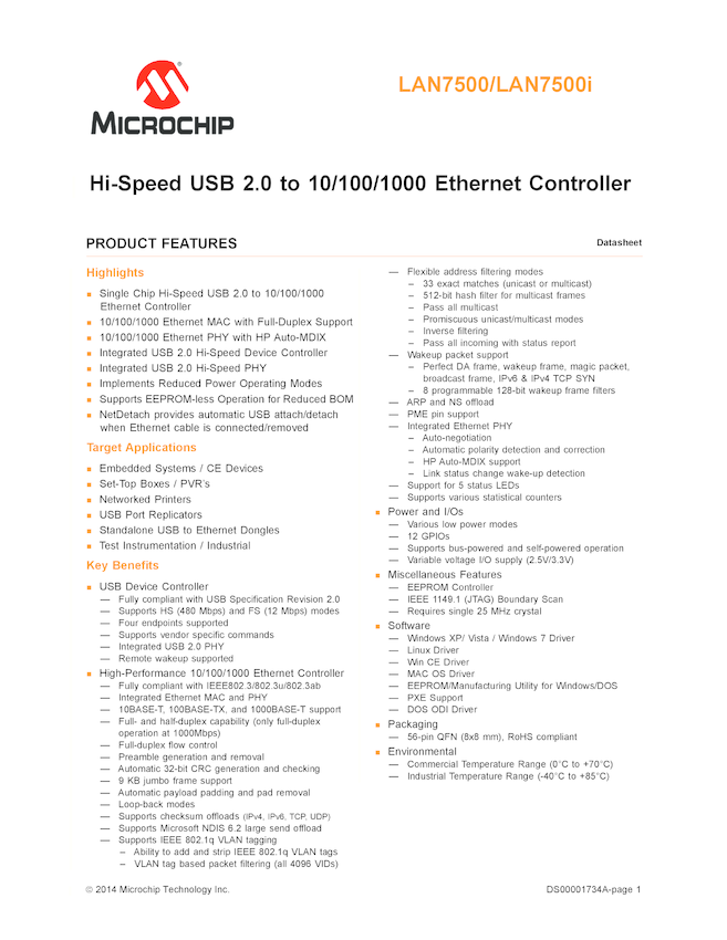 LAN7500/LAN7500i - Hi-Speed USB 2.0 to 10/100/1000 Ethernet Controller (05/07/2014)