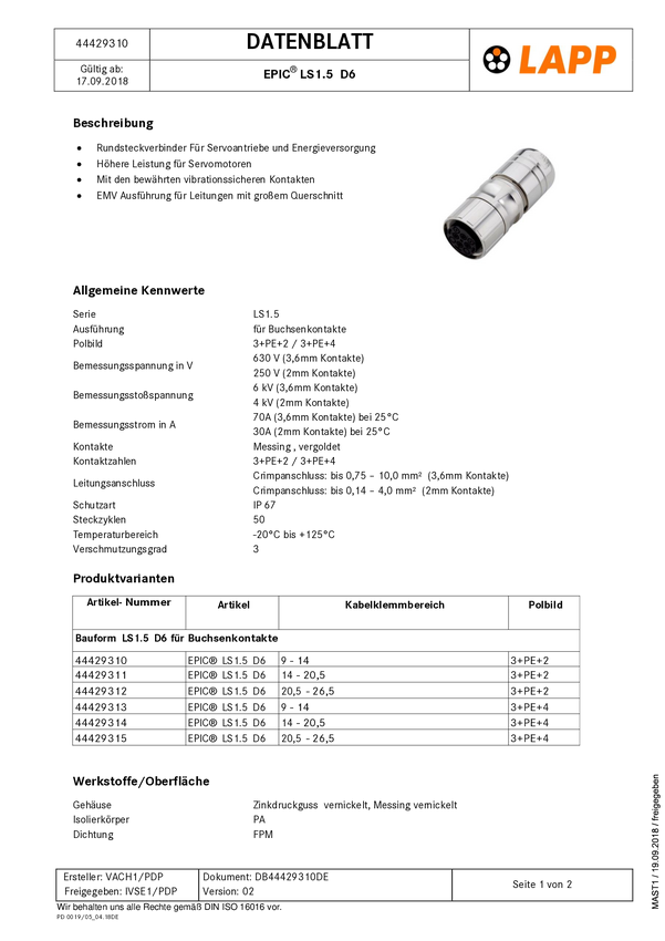 LAPP Lapp Zubehör 44420295, 1 szt.