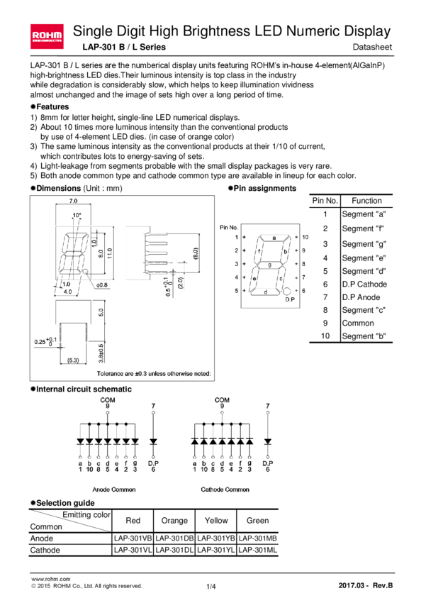 Displays Segmented Panel 1DIGIT 8LED Green 10-Pin DIP Film Pack