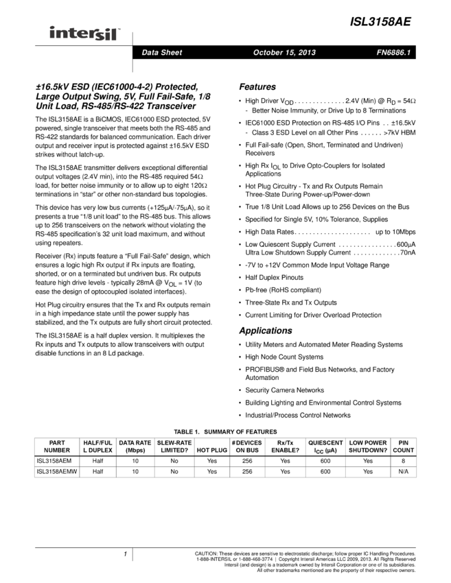 ±16.5kV ESD (IEC61000-4-2) Protected, Large Output Swing, 5V, Full Fail-Safe, 1/8 Unit Load, RS-485/RS-422 Transceiver