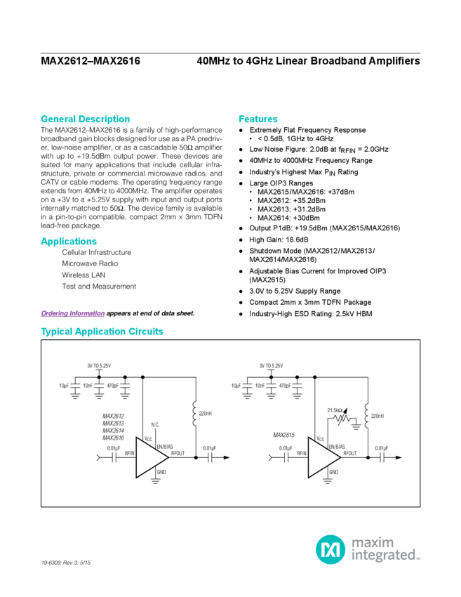 MAX2616 Large OIP3, Flat Frequency Response <0.5dB Broadband Amplifier