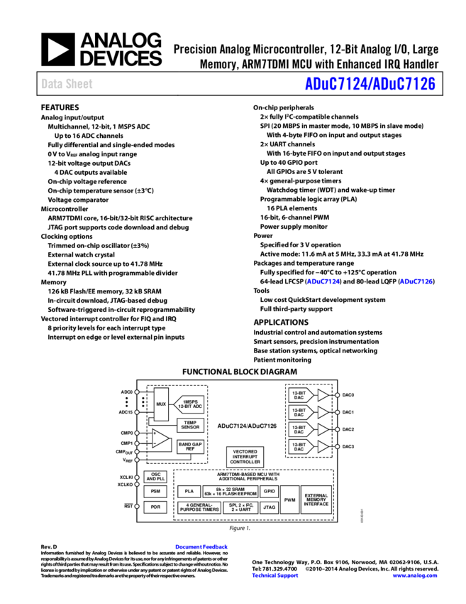 ADUC7126: Precision Analog Microcontroller, 12-Bit Analog I/O, Large Memory, ARM7TDMI MCU with Enhanced IRQ Handler