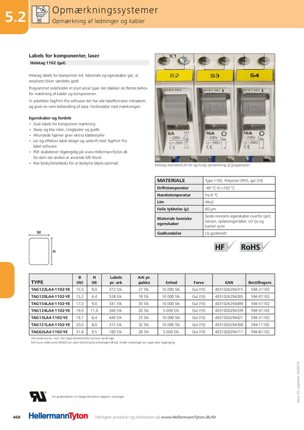 Etykieta do druku laserowego HellermannTyton TAG155LA4-1101-WH-1101-WH 594-71101, 5000 szt.