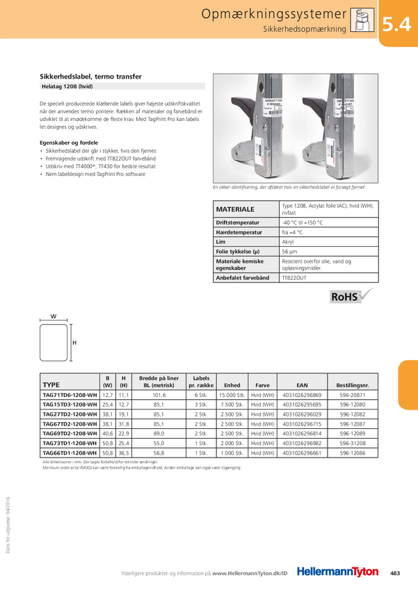 Etykieta do druku laserowego HellermannTyton TAG66TD1-1208-WH-1208-WH 596-12086, 1000 szt.