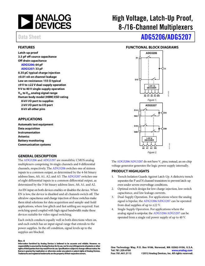 ADG5209: High Voltage Latch-Up Proof, 4-Channel Multiplexer