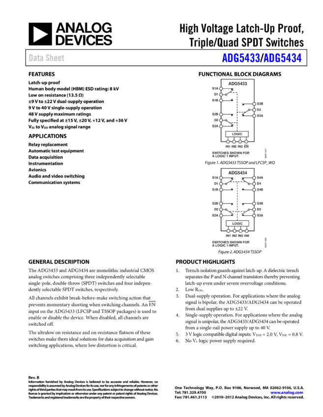ADG5433: High Voltage Latch-up Proof Triple SPDT Switches