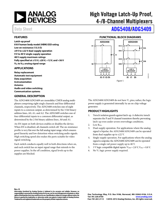 ADG5409: High Voltage Latch-up Proof 4-/8-Channel Multiplexers