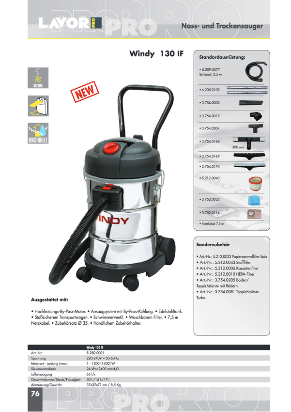 Odkurzacz do pracy na sucho i mokro Lavor Windy 265 IF 8.239.0001 130 l/s 65 l 1 szt.