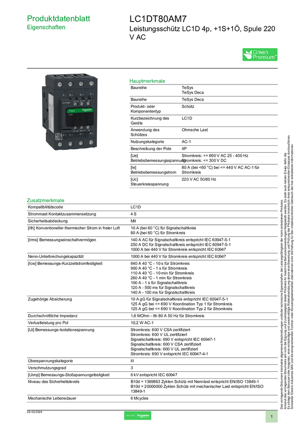 Stycznik Schneider Electric LC1DT80AM7, 1 szt.
