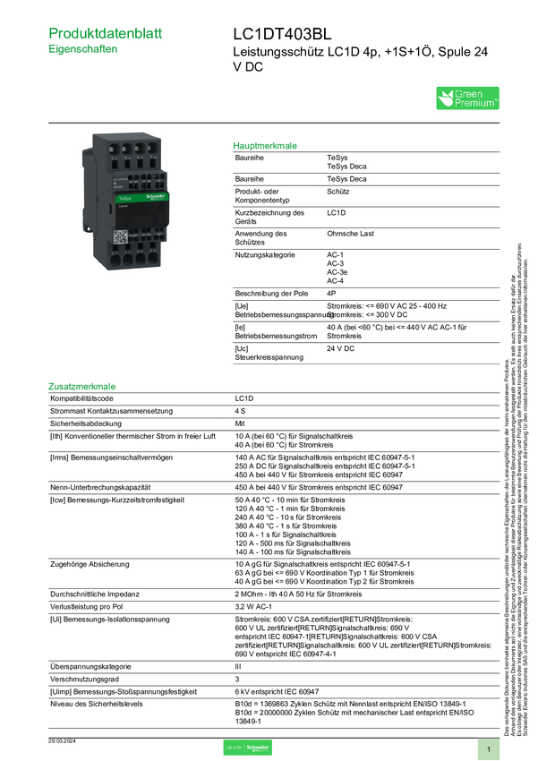 Stycznik Schneider Electric LC1DT403BL, 1 szt.
