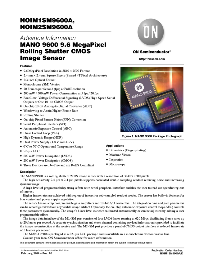 Image Sensor Monochrome CMOS 3840x2500Pixels 52-Pin LCC Tray