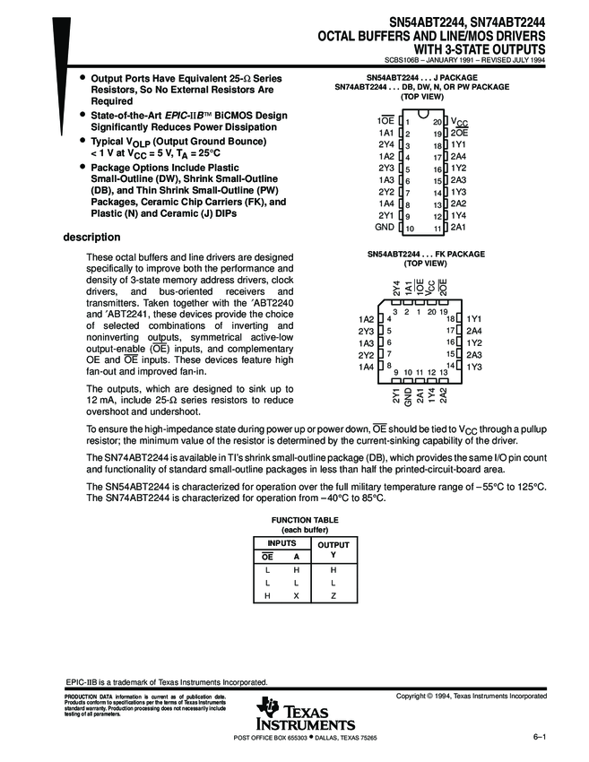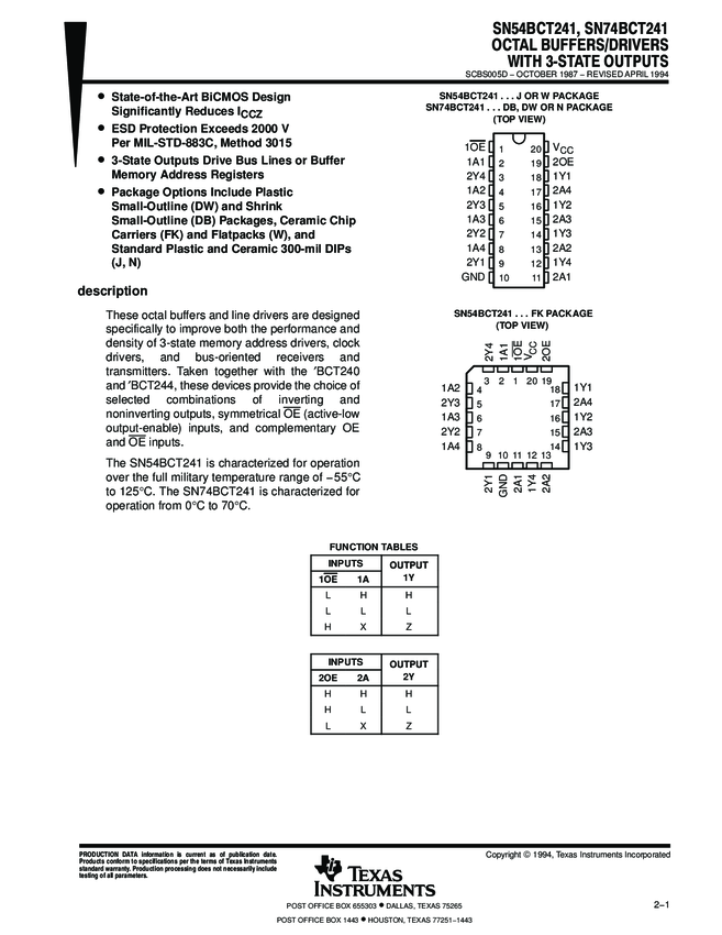 Buffer/Line Driver 8-CH Non-Inverting 3-ST/Open Collector BiCMOS 20-Pin LCCC Tube