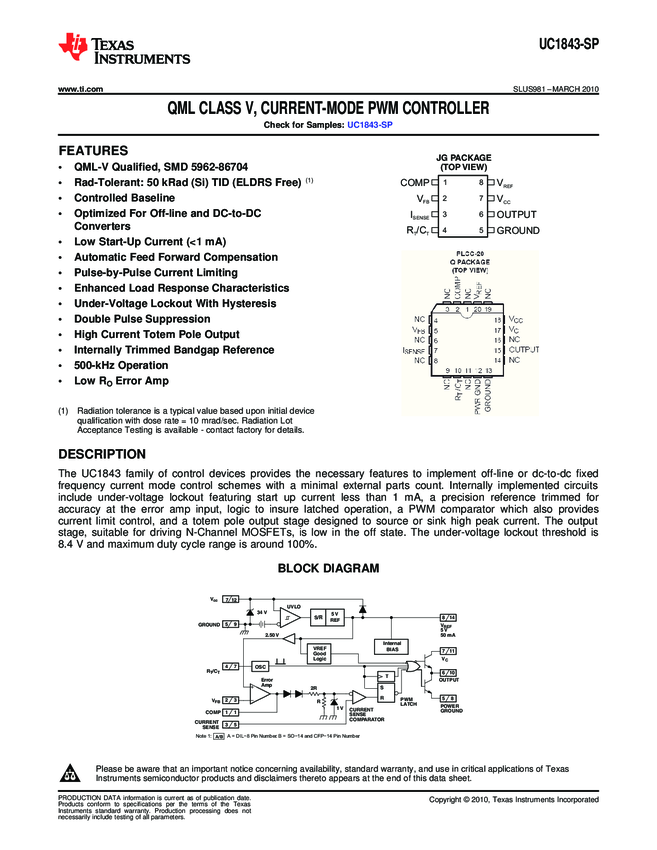 Current Mode PWM Controller 1A 20-Pin LCCC Tube