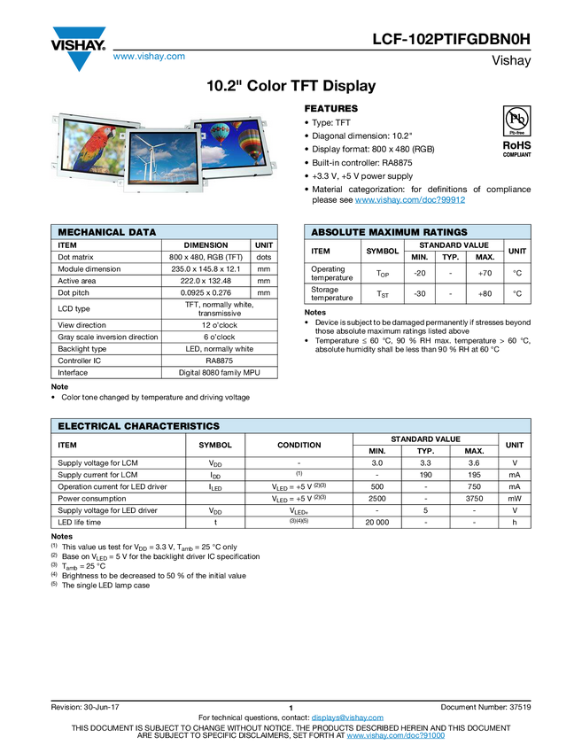 10.2" Color TFT Display