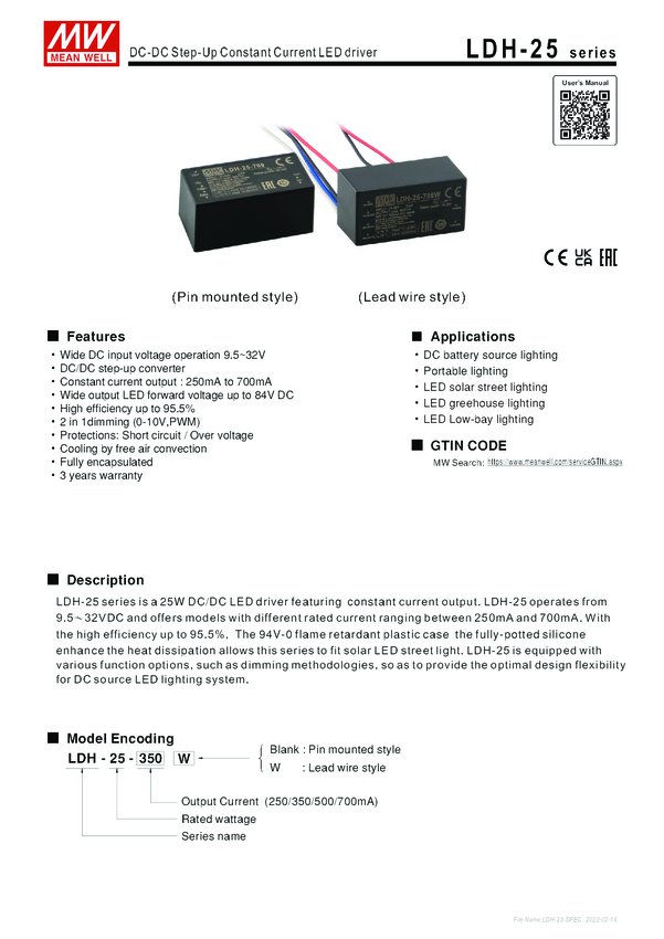 MEAN WELL LDH-25-250 Sterownik LED 21 W 0.25 A 12.5 - 84 V 1 szt.