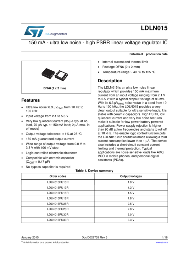 150 mA - ultra low noise - high PSRR linear voltage regulator IC