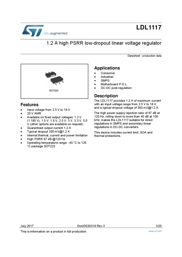 LDO Regulator Pos 1.18V to 17.4V 1.2A 8-Pin SO T/R