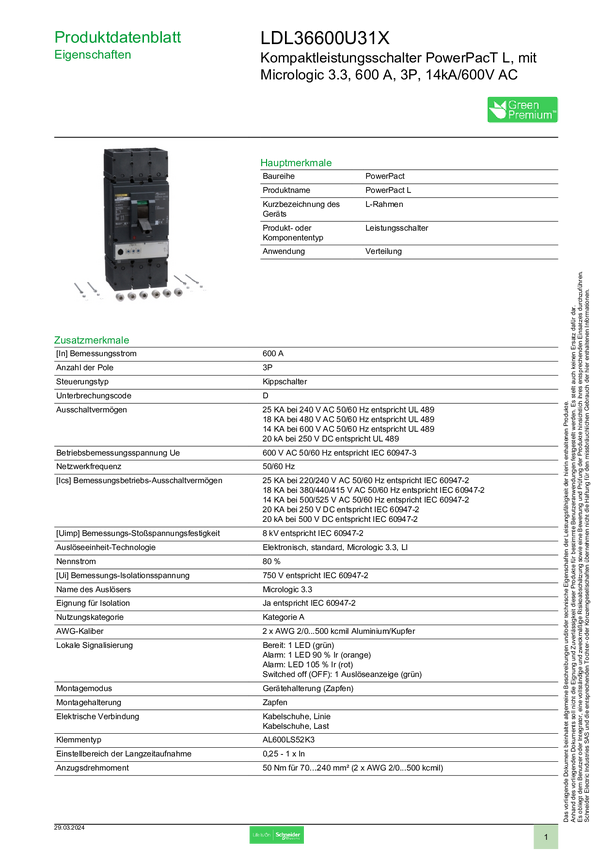 Wyłącznik zasilania Schneider Electric LDL36600U31X 1 szt.