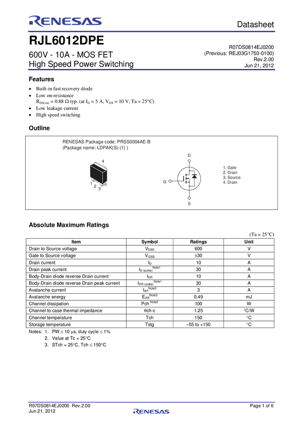 NPN Single Power Mosfet 450V 10A 0.73Mohm LDPAK