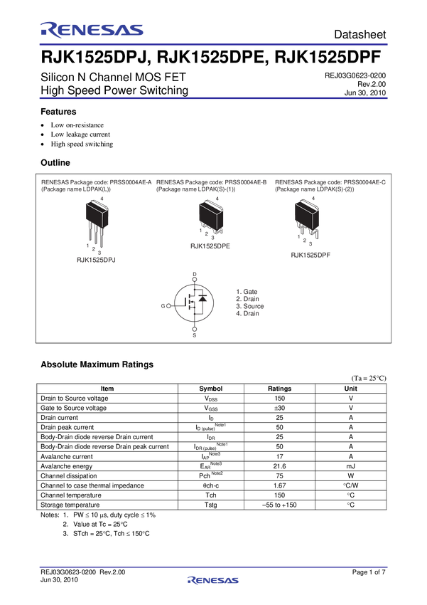 Nch Single Power Mosfet 150V 25A 110Mohm LDPAK(S)-(1)/To-263