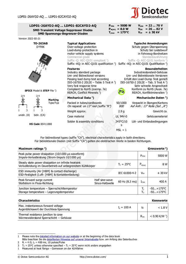 Diotec Dioda TVS LDP01-26AYD2R-AQ TO-263AB 28 V