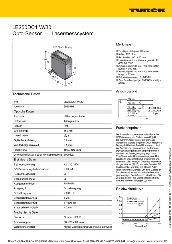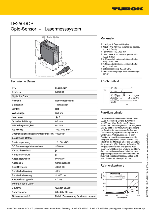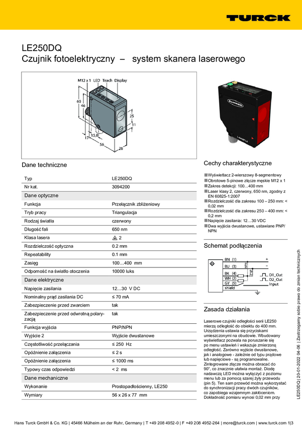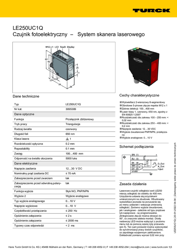 Czujnik odległości Turck LE250D 3094202 1 szt.