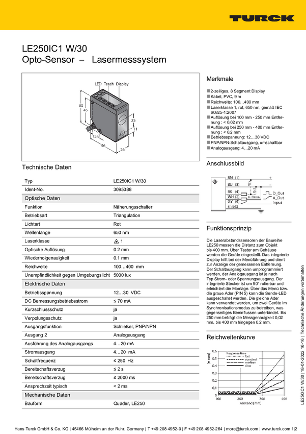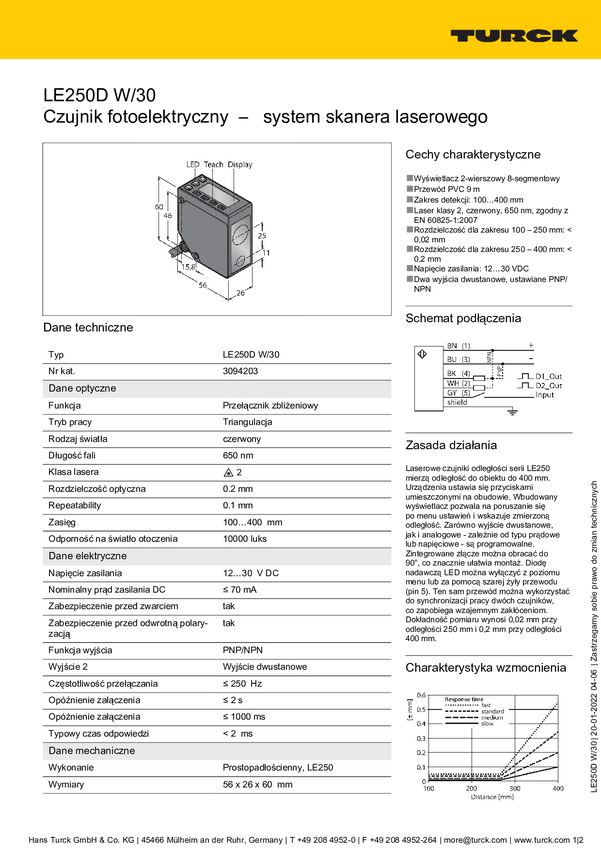 Czujnik odległości Turck LE250D W/30 3094203 1 szt.