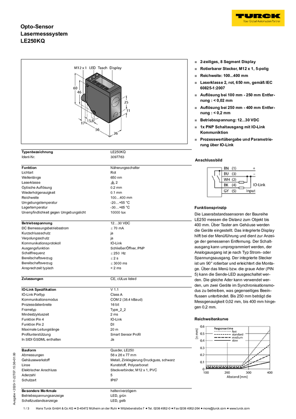 Czujnik odległości Turck LE250KC1QP 3097768 1 szt.