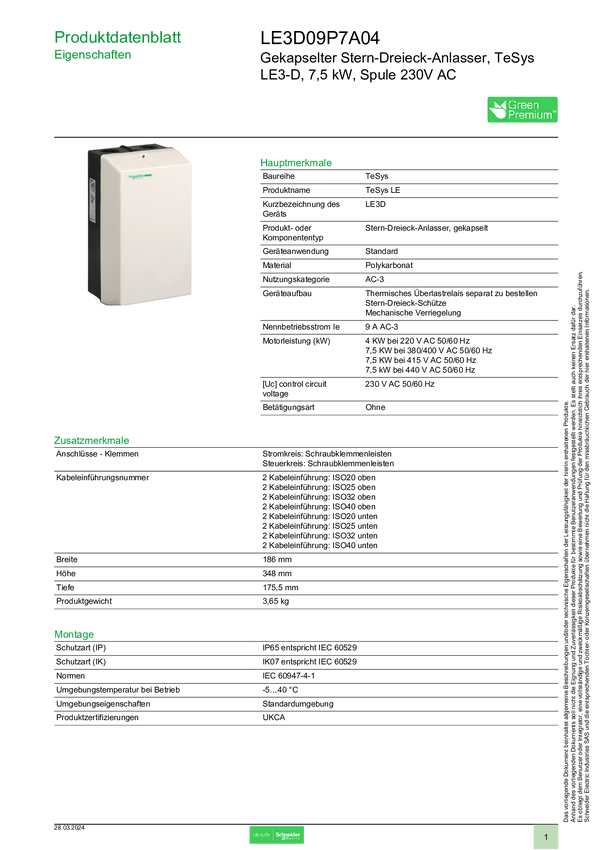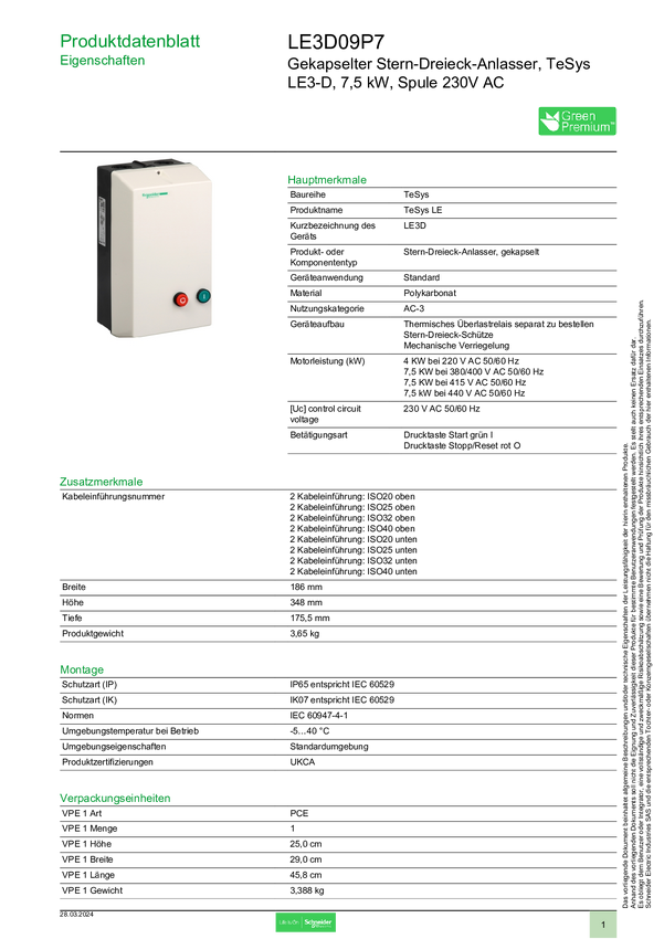 Schneider Electric LE3D09P7 Akcesorium do wyłącznika mocy 1 szt.