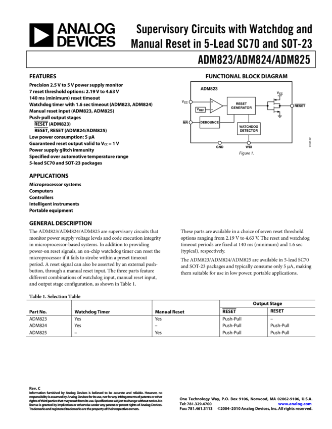 ADM824: Supervisory Circuits with Watchdog and Manual Reset in 5-Lead SC70 and SOT-23