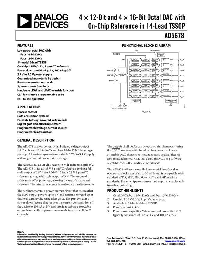 AD5678: 4 x 12-Bit and 4 × 16-Bit Octal D/A Converter with On-Chip Reference in 14-Lead TSSOP