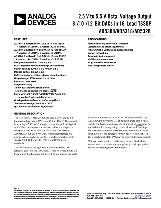 AD5328: 2.5 V to 5.5 V Octal Voltage Output 12-Bit DACs in 16-Lead TSSOP