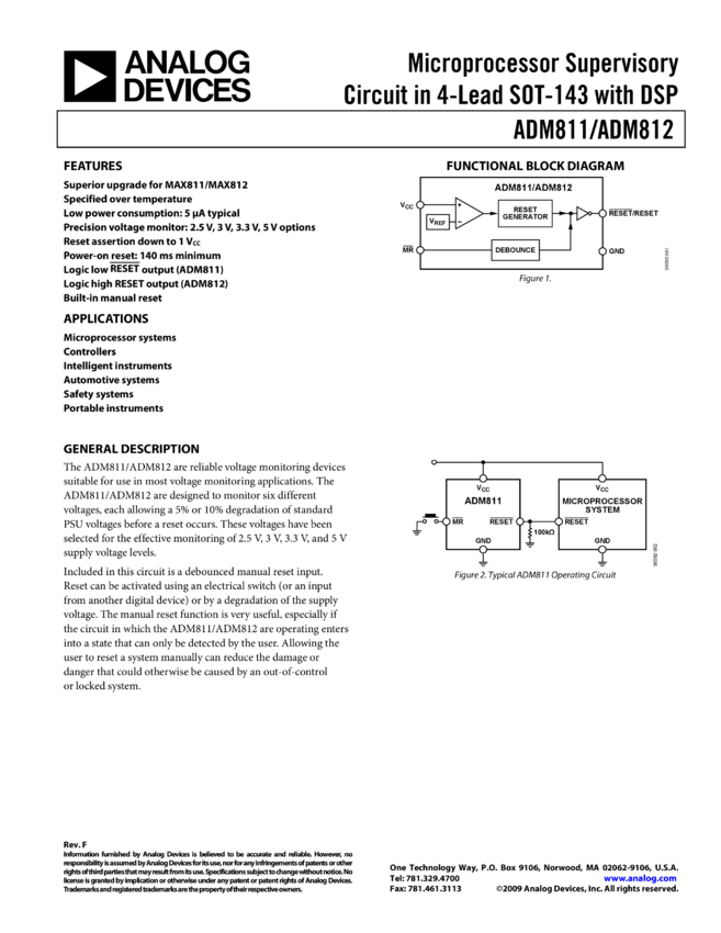ADM812: Microprocessors Supervisory Circuit in 4-Lead SOT-143, Logic High RESET Output