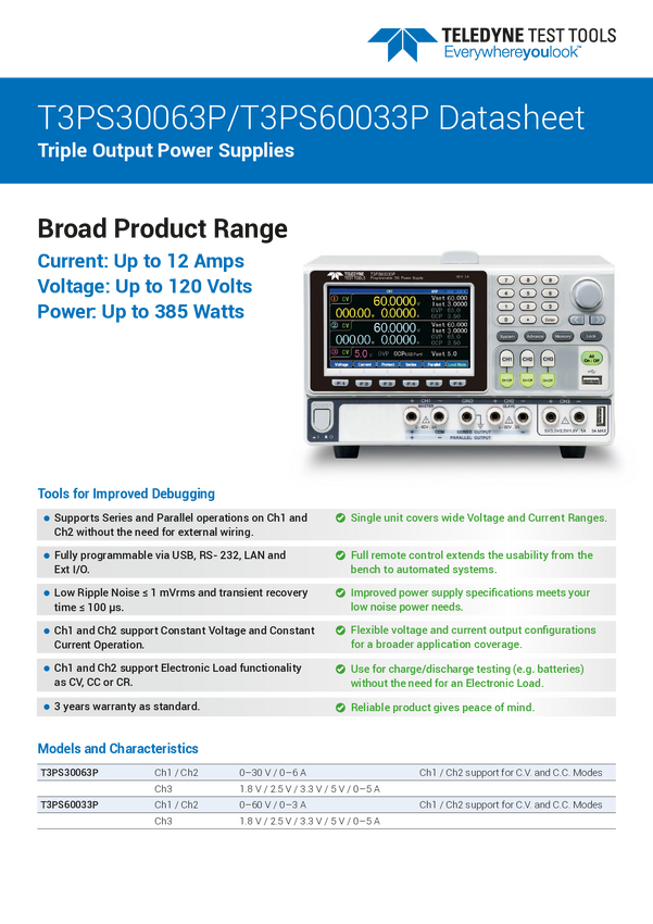 Zasilacz laboratoryjny regulowany Teledyne LeCroy T3PS30063P 0 - 30 V 0 - 6 A 680 W