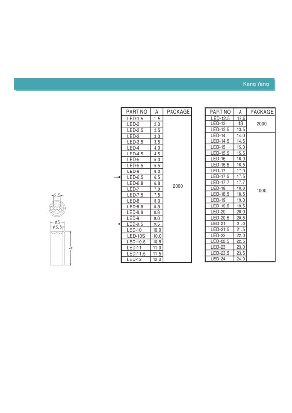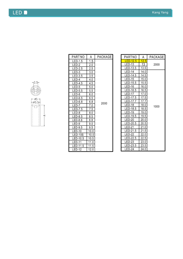 Podstawka pod diodę LED5, wysokość A=5.0mm, bezbarwna