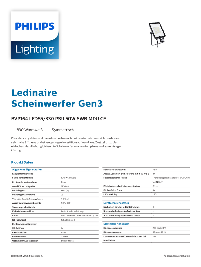 Reflektor LED Philips LED Gen3 BVP164 LED55/830 53476699 50 W 5500 lm IK07, IP65