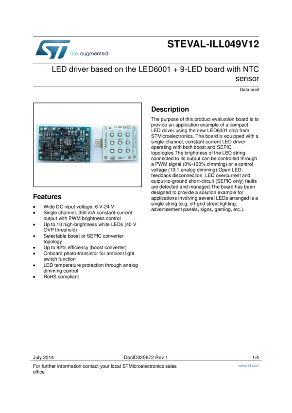 LED driver based on the LED6001 + 9-LED board with NTC sensor