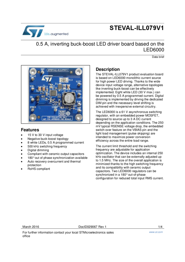0.5 A, inverting buck-boost LED driver board based on the LED6000
