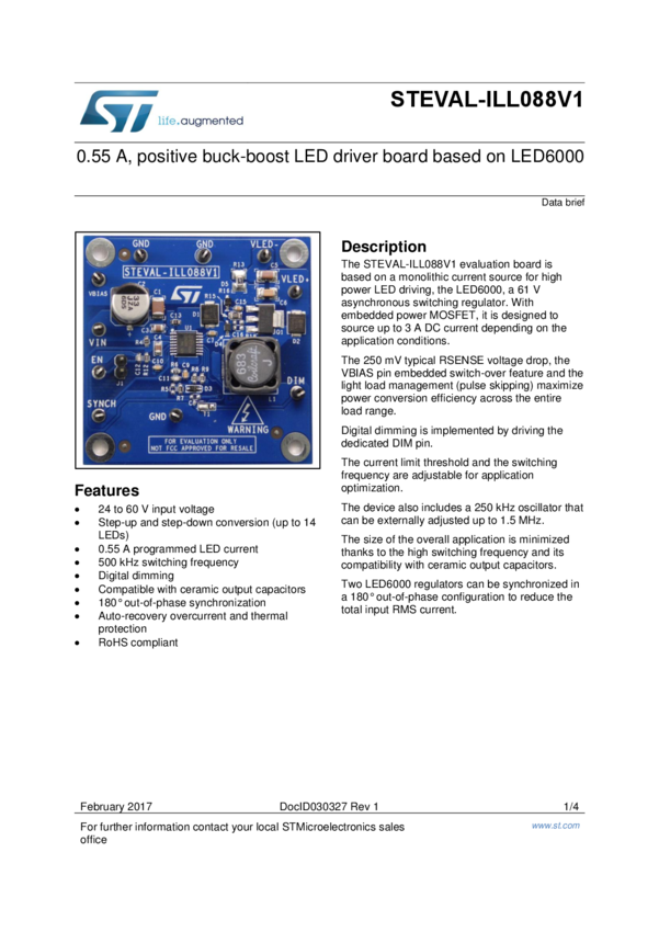 0.55 A, positive buck-boost LED driver board based on LED6000