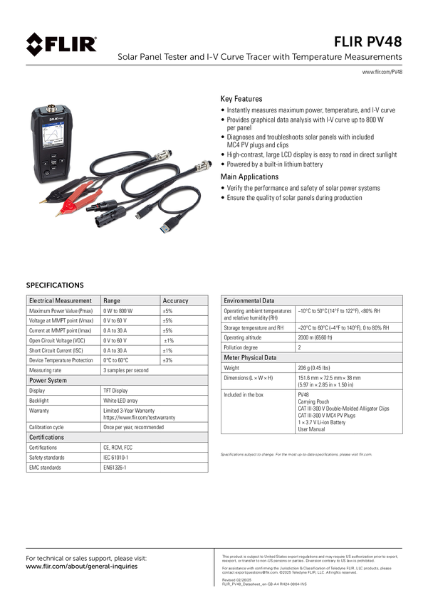 Tester paneli słonecznych i śledzący krzywą charakterystyczną IV z pomiarem temperatury