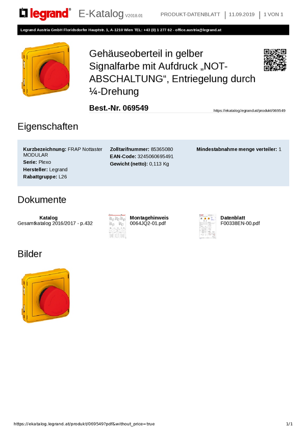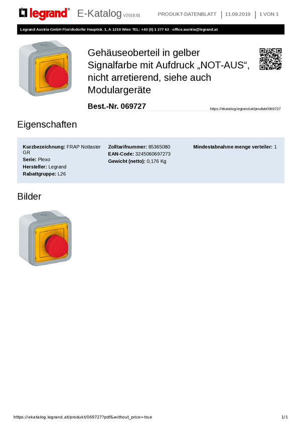 Legrand Legrand 069727 Przycisk zatrzymania awaryjnego 1 NO IP55 1 szt.