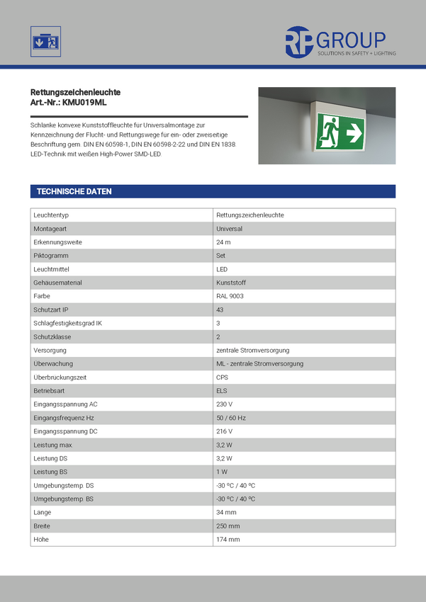 RP Technik KMU019ML Oznakowanie drogi awaryjnej z podświetleniem LED w lewo, w prawo, w górę, w dół