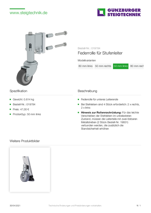 MUNK Günzburger Steigtechnik 19784 Rolka sprężynowa do wieloelementowego koła sprężynowego z lewej strony 1 szt.