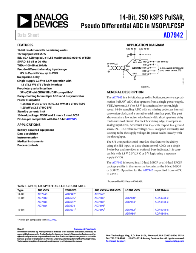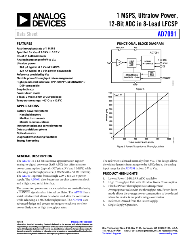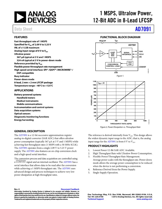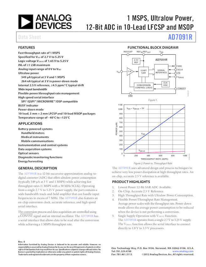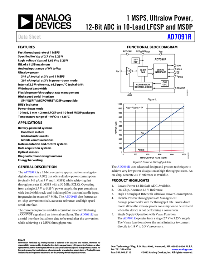 AD7091R: 1 MSPS, ULTRALOW POWER, 12-BIT ADC WITH ON-CHIP REFERENCE IN 10-LEAD LFCSP AND MSOP