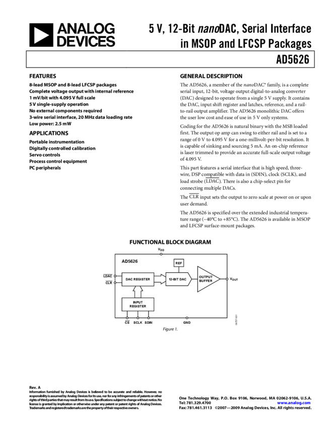5 V, 12-Bit DAC®, Serial Interface in MSOP and LFCSP Packages
