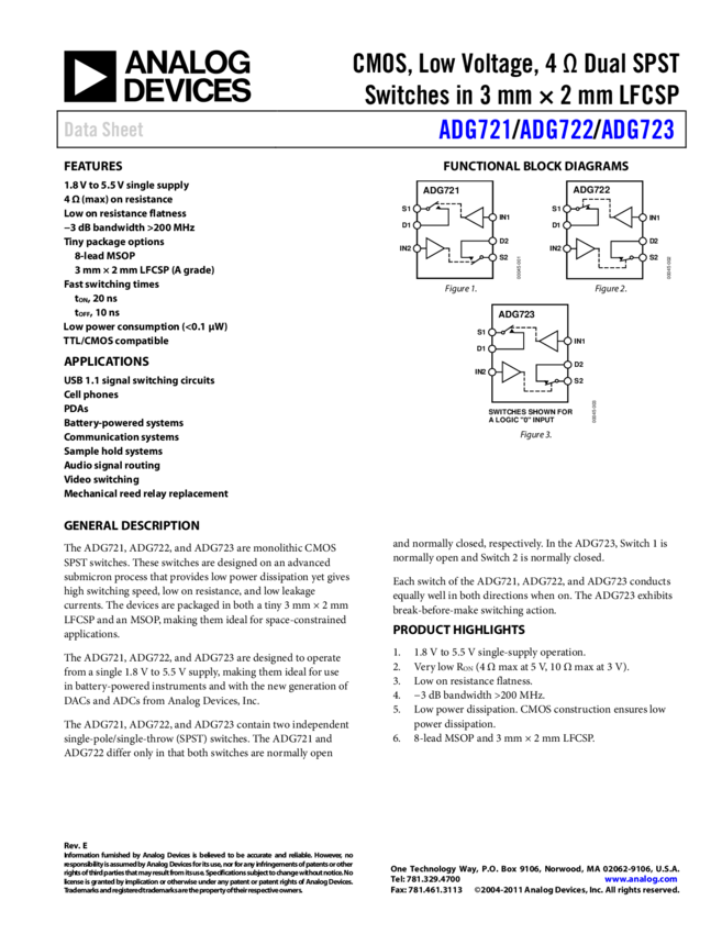 ADG888: 0.4 Ω CMOS, Dual DPDT Switch in WLCSP/LFCSP/TSSOP Packages
